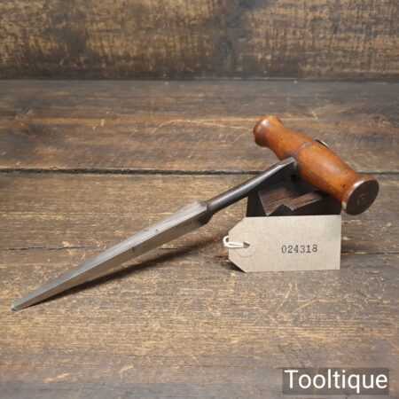 Vintage beechwood handled 7/16” square rimer or reamer in good used condition. The edges have been redressed and are crisp.