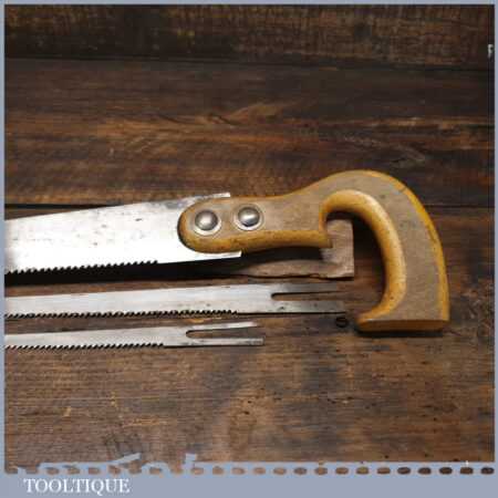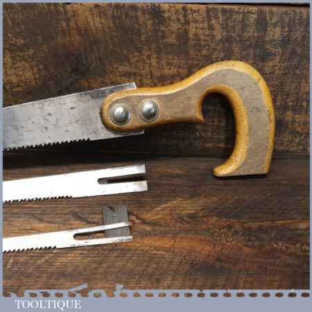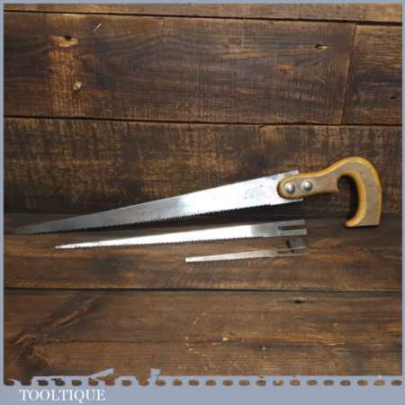 Vintage beechwood handled keyhole saw with three blades, in good used condition and ready for use.
