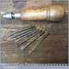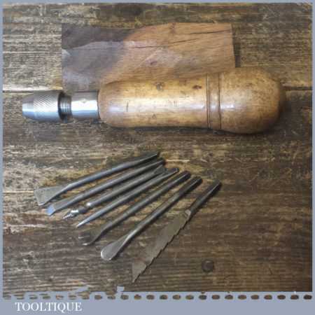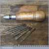 Vintage beechwood handled multi tool with attachments encased in the screw top handle, in good used condition.