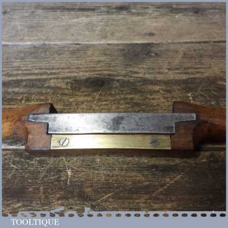 Vintage beechwood spokeshave with brass sole and approx 3 ½” cutter, in good used condition and ready for use.