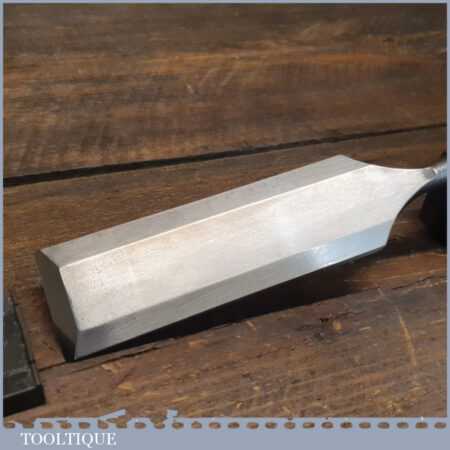 The chisel has been checked to ensure the tang is seated properly and the handle is solid and fit for use. All refurbished chisels are water cooled during the sharpening process to ensure the tempering is not affected.