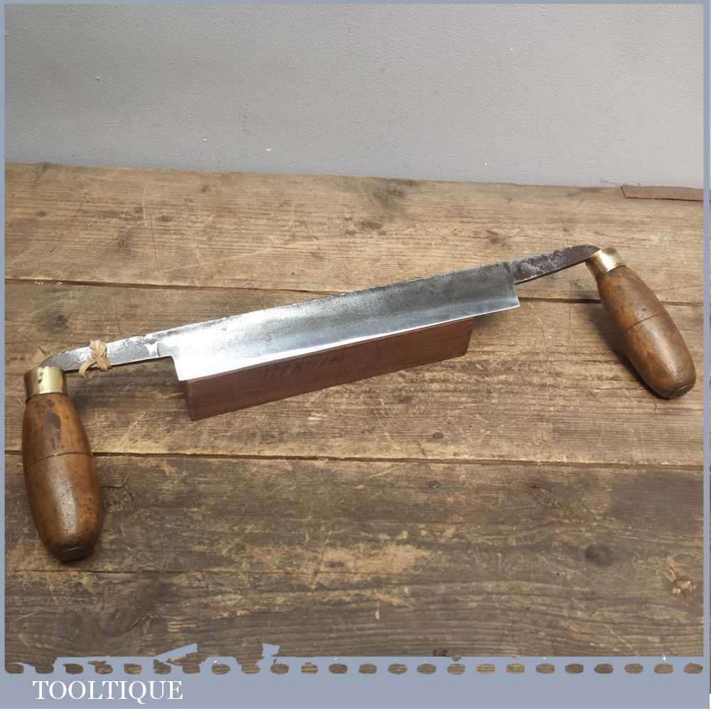 Vintage blacksmith made drawknife with an 9 inch cutting blade which has been carefully sharpened and honed and is now ready to use, it’s also now easy to maintain with regular honing for a super sharp cut.