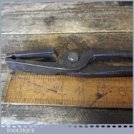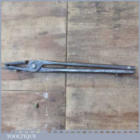 Vintage blacksmith’s 15” duckbill V-bit tongs in good used condition.
