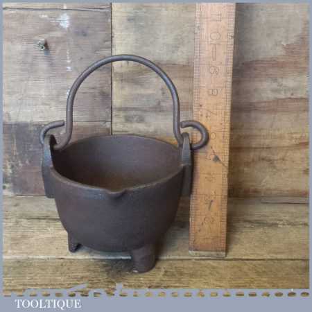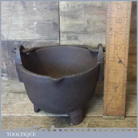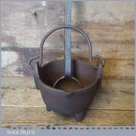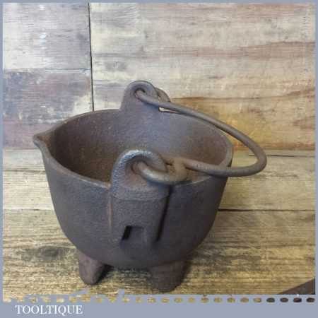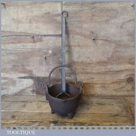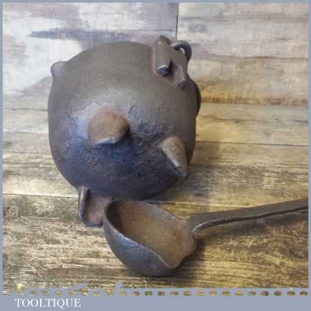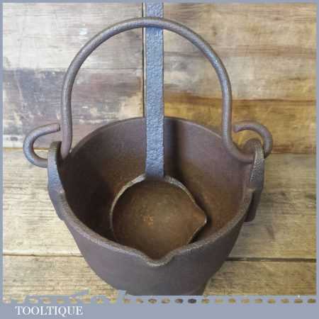 Vintage blacksmith’s handmade lead smelting pot and ladle in good used condition.