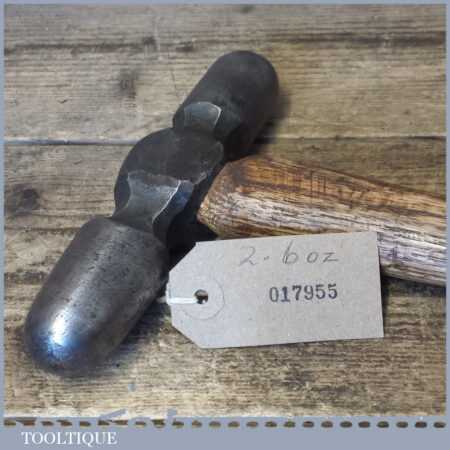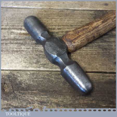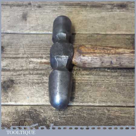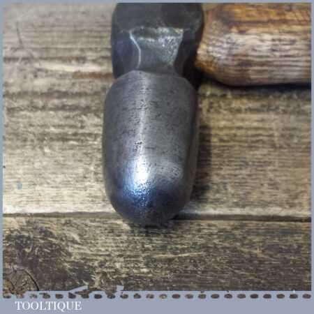 Unusual vintage blacksmiths metalworker’s 2lb 6oz double-sided ball shaped hammer with wooden handle, in good used condition.