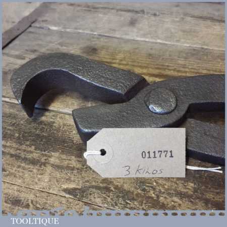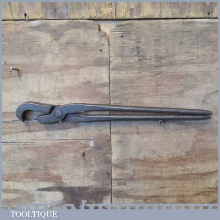 Vintage blacksmith’s or wheelwright’s nipping tongs in good used condition. Makers mark present but hard to decipher.