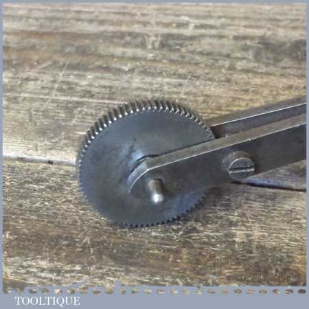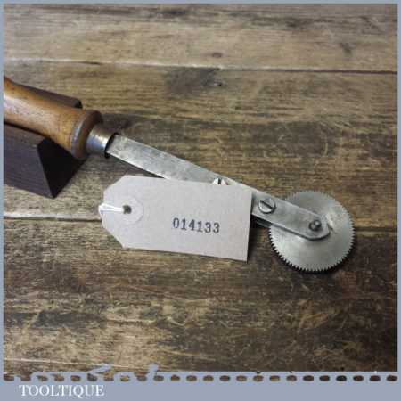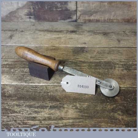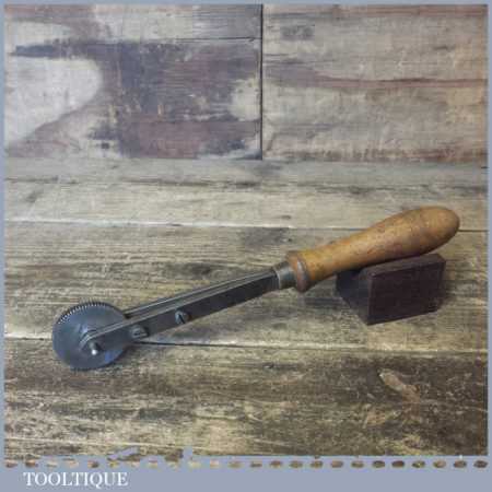 Vintage bookbinders toothed decorative rolling wheel with beechwood handle in good used condition.