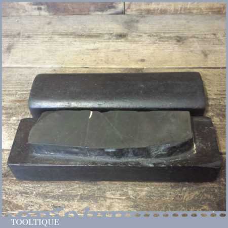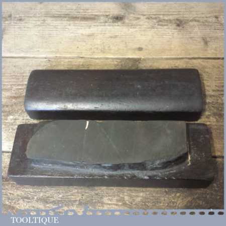 Vintage 6 ½” x 2” natural Turkey honing stone in mahogany box and in good used condition. Note: lapped flat ready for use. This is a natural chunk fitted tightly in the box and is possibly two bits so have left it as is. The stone has been lapped flat ready for use