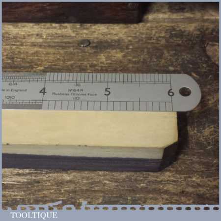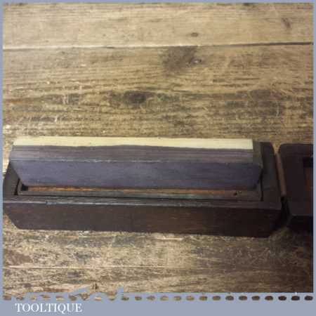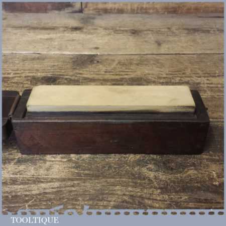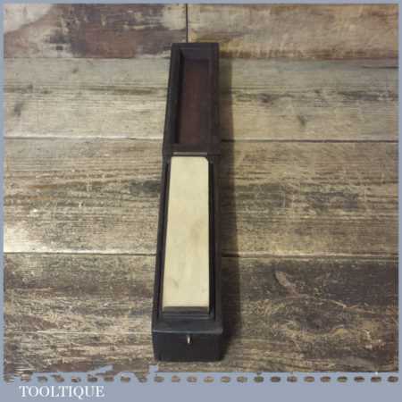 Vintage boxed 6” x 1 ¼” natural Belgium Coticule honing stone in hinged mahogany box and in good used condition. Note: lapped flat ready for use.