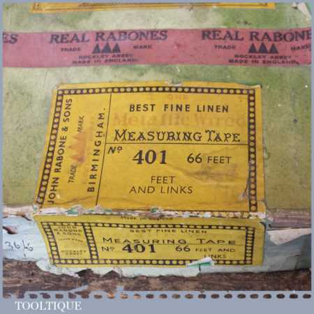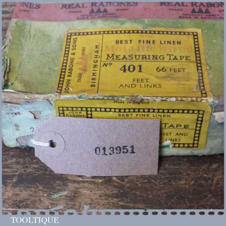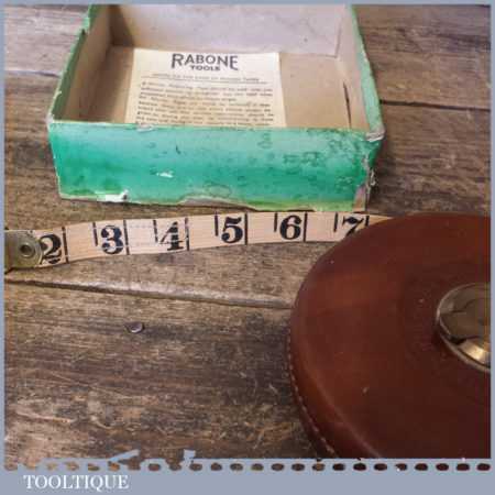 Vintage boxed 66 ft John Rabone & Sons No: 401 leather bound tape measure in little used condition.