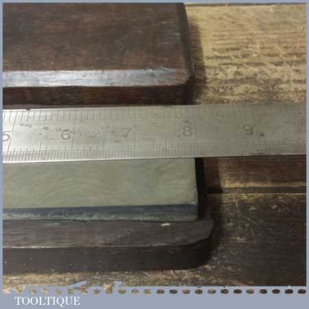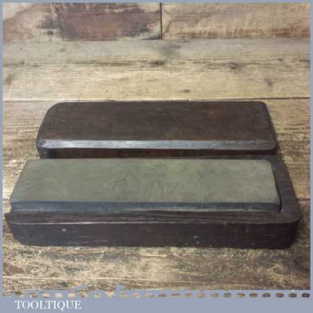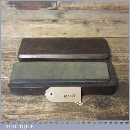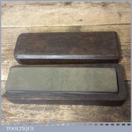 Vintage 8” x 2” natural Dalmore Blue Honing stone in mahogany box and in good used condition. Note: lapped flat ready for use.