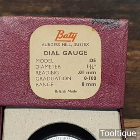 Vintage Boxed Baty shockproof metric dial gauge in good used condition.
