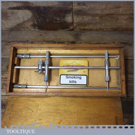Vintage boxed Benson Verniers engineer’s trammel points with accessories, in good used condition