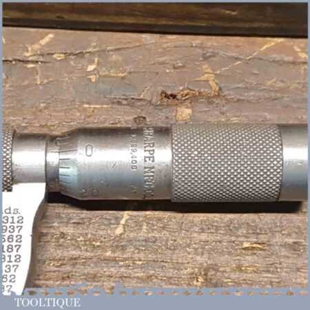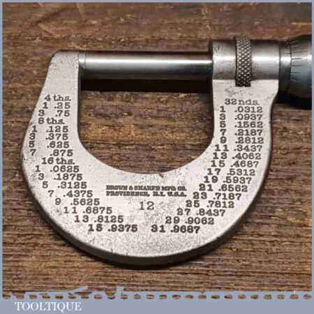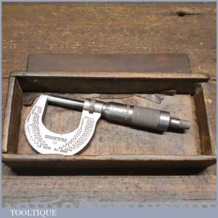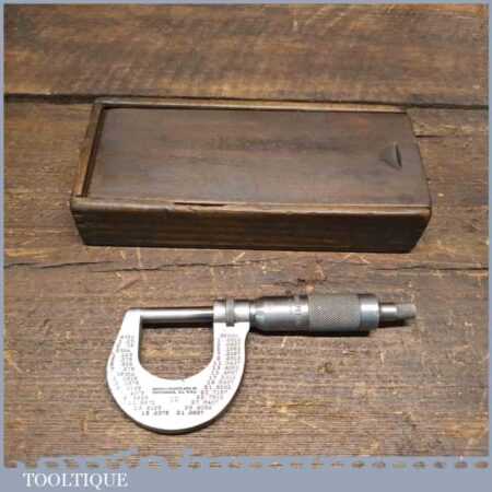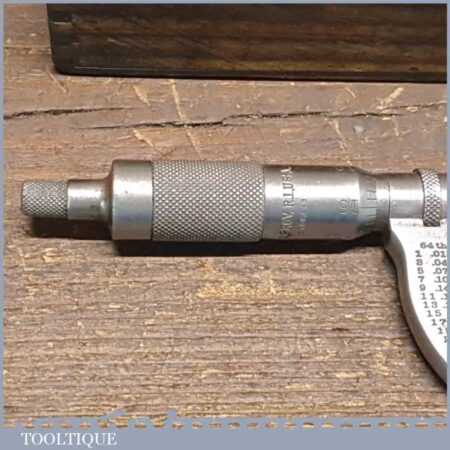 Vintage boxed Brown & Sharpe Mfg Co. USA 0-1 imperial micrometer in good used condition.