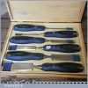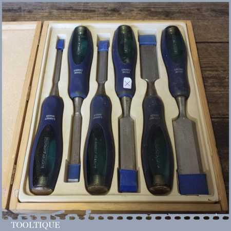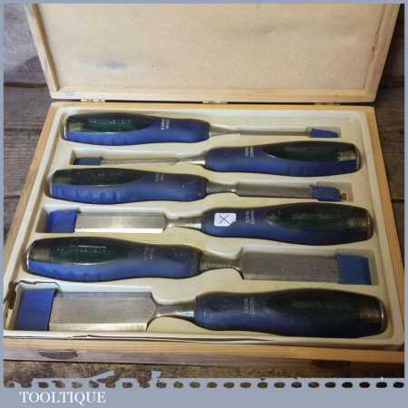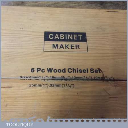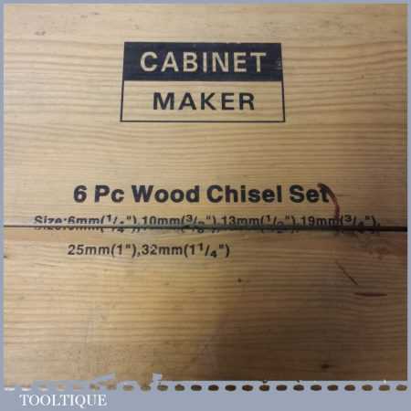 Vintage boxed Cabinet Maker 6-piece bevel edge chisel set in little used condition.