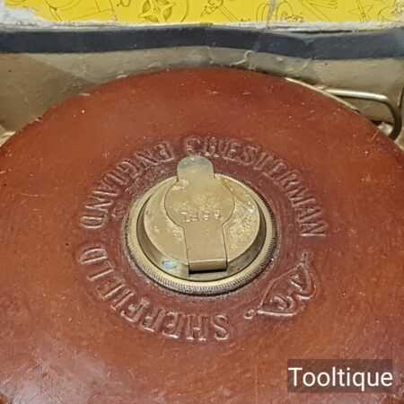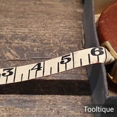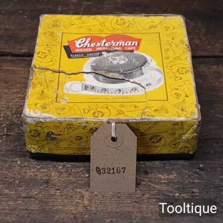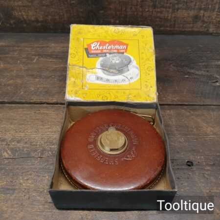 Vintage Boxed Chesterman 66ft Leather Bound Tape Measure in good used condition.