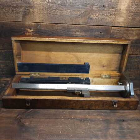 Vintage boxed Chesterman No: 369 engineer’s 20″ Vernier height gauge in good used condition. Note: Also stamped London Gauge tools & Engineering Co.