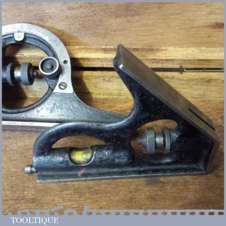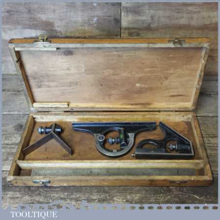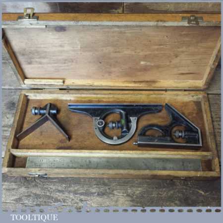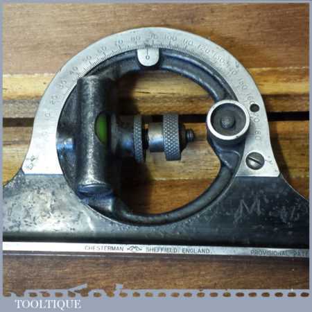 Vintage boxed Chesterman No: 80/1 cast steel combination square, protractor and centre finder (Pat. dated 1932) complete and in good used condition.