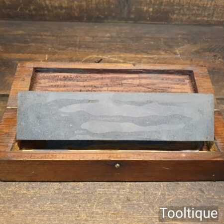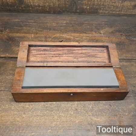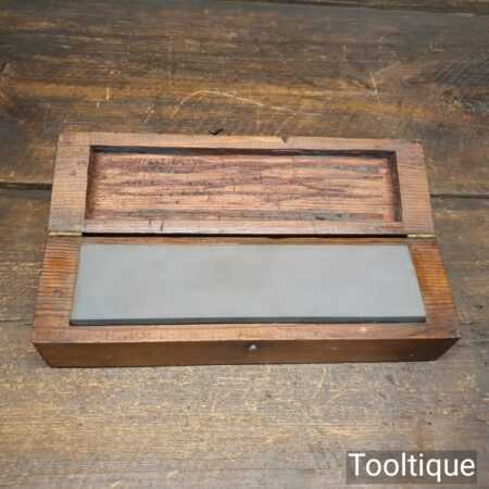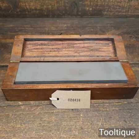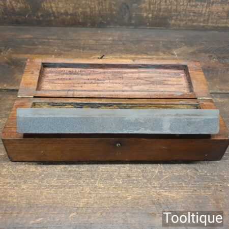 Vintage boxed combination carborundum oil stone in good used condition flattened ready for use. Medium and course grade, best used with 3 in one oil.