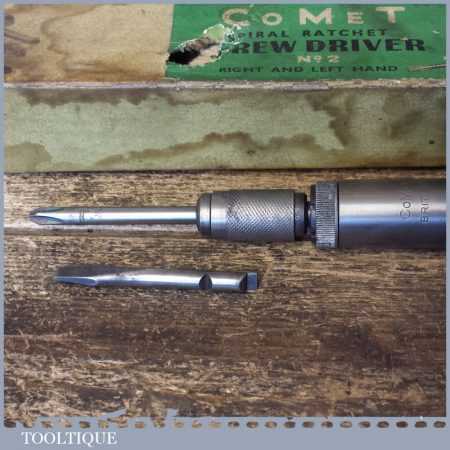 Vintage boxed “Comet” No: 2 pump action screwdriver in good used condition. Note: 2 ends.