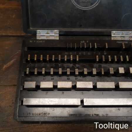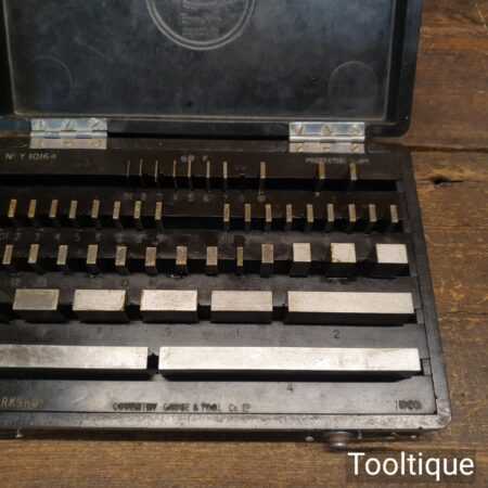 Vintage boxed Coventry Gauge & Tool Co. Ltd 50 No: engineering slip gauges in a bakelite box and in good used condition.