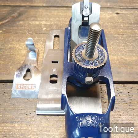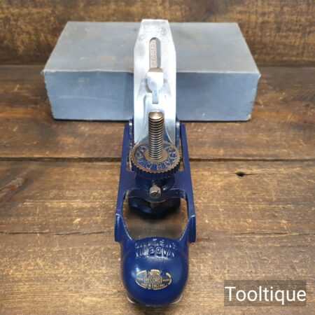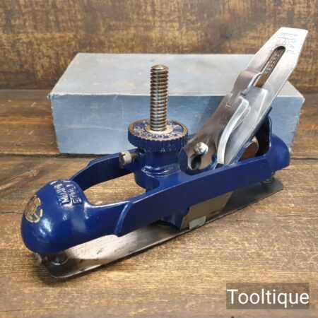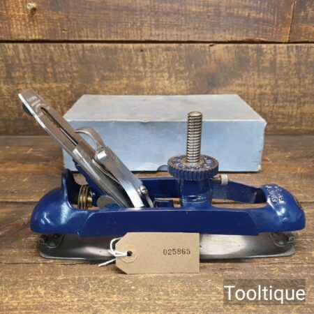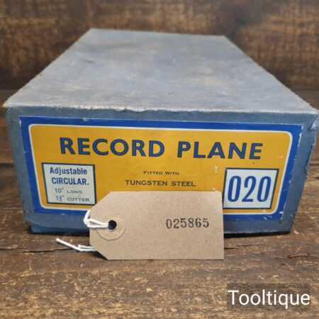 Vintage boxed Crisp Record No: 020 circular compass plane in good used condition, fully refurbished and sharpened ready for use. All the components have been thoroughly cleaned and move freely. It’s not often we find these in this condition and about as good as you can get when looking for an earlier type.