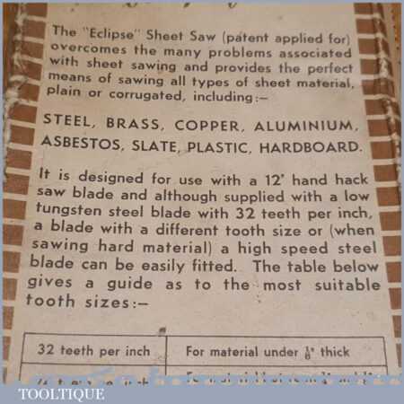Vintage boxed Eclipse No: 55 sheet metal saw in good used condition.