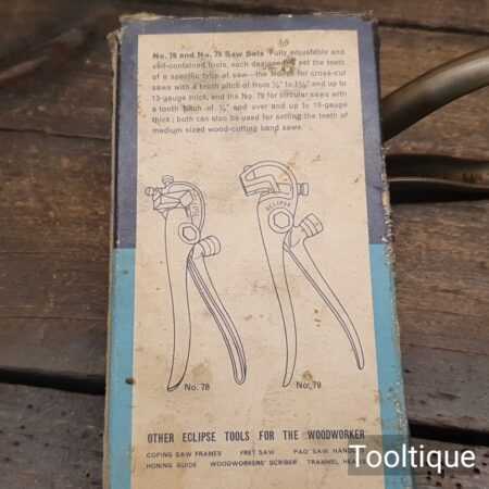 Vintage Boxed Eclipse No: 77 saw setting pliers, refurbished ready for use and in good used condition. Inner parts have been cleaned and oiled.