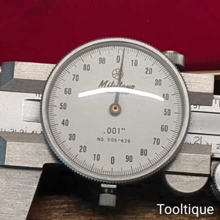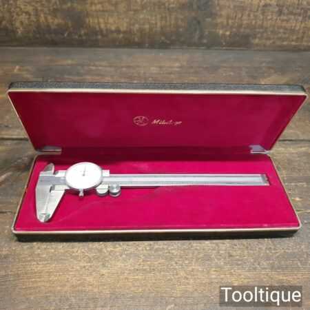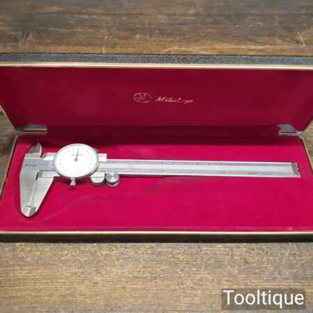 Vintage boxed engineering Mitutoyo dial caliper in good used condition.