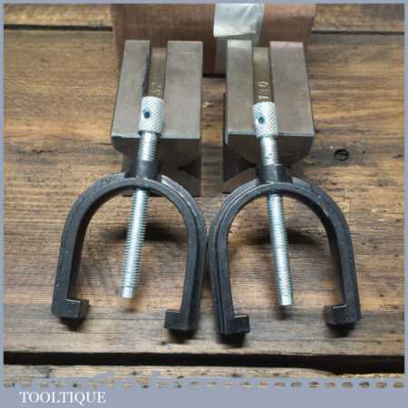 Vintage boxed engineers 1 ¾” vee blocks and clamps in good used condition.