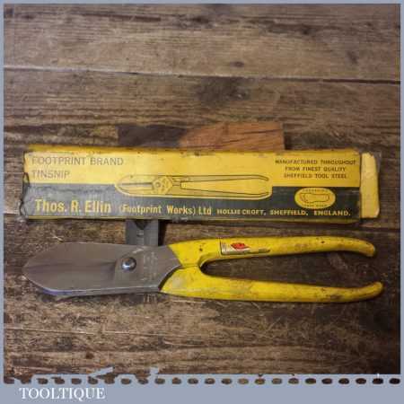 Vintage boxed Footprint 8” tin snips in good used condition.