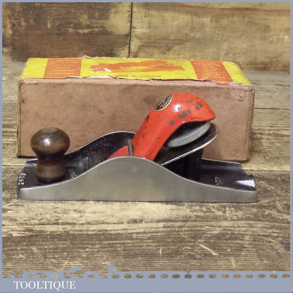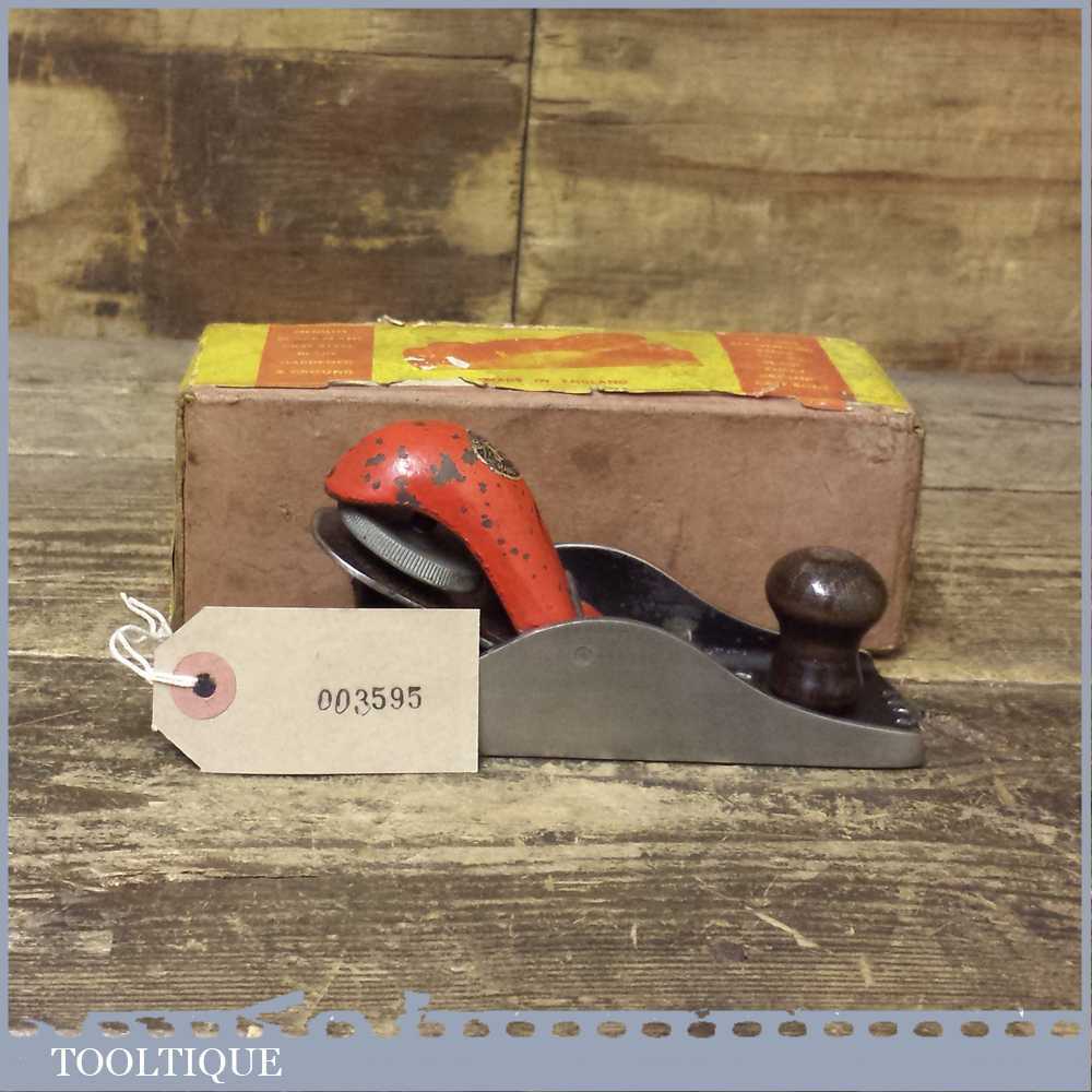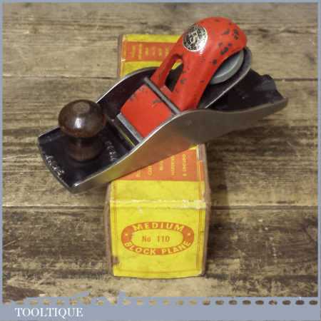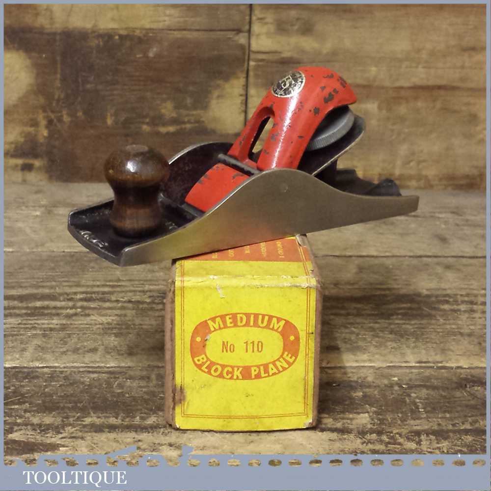 Vintage Boxed FS hand tools No: 110 block plane, it is British made and has been lapped flat and is perfectly usable. It has a replacement record iron to complete the upgrade.