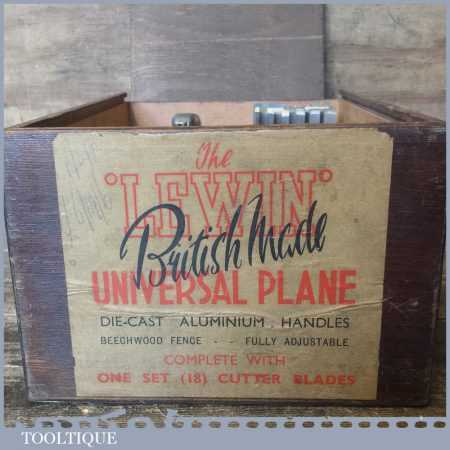 Vintage boxed Lewin combination multi plane complete with cutters and in good used condition. The plane has been thoroughly cleaned to ensure all the parts move freely. Note: the cutters have not been sharpened, although many will be sharp.