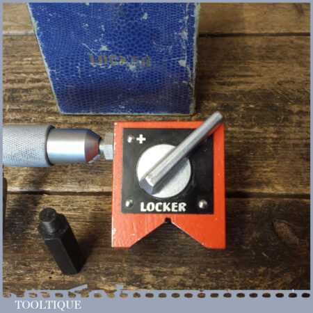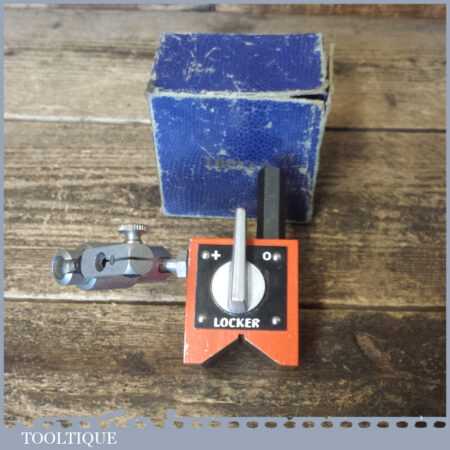 Vintage boxed Locker engineer’s magnetic Vee block with side attachment in good used condition.
