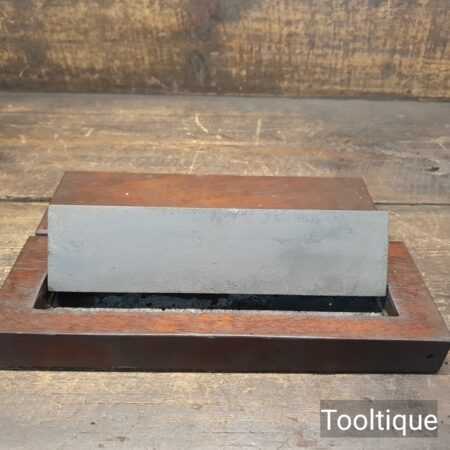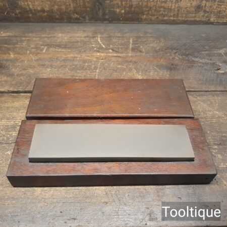 Vintage Med/Fine India Combination oilstone in a mahogany box in good used condition. Note: Seen little use.