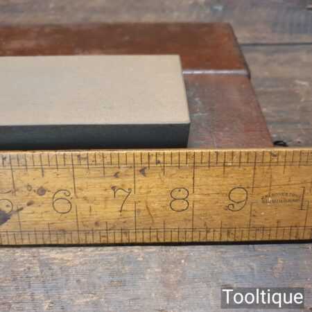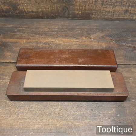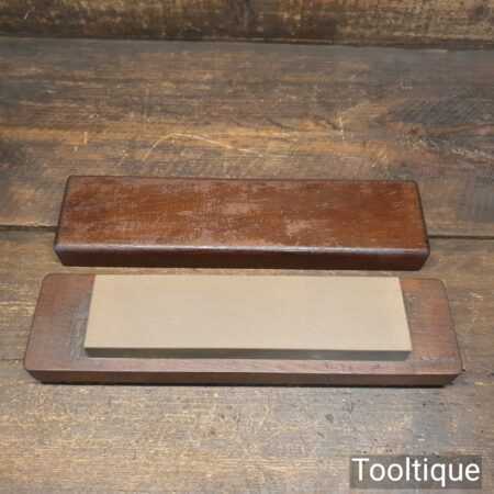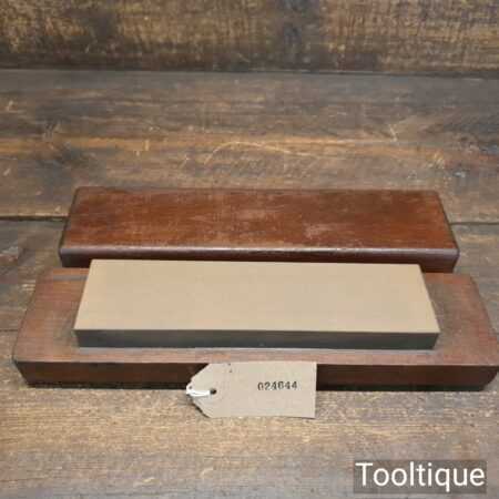 Vintage medium grit 8” x 2” India oil stone in a wooden box in good used condition. Note: this stone has been lapped flat ready for use