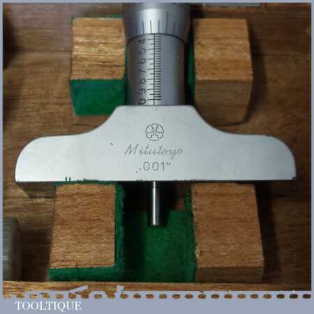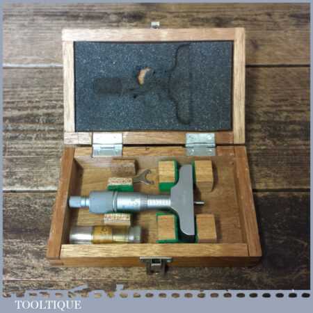 Vintage boxed Mitutoyo depth micrometer in good used condition.