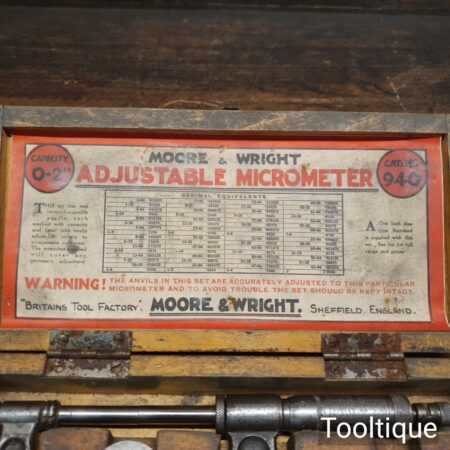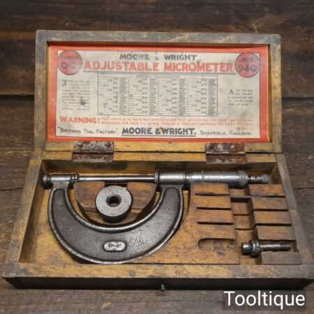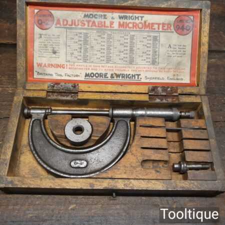 Vintage boxed Moore & Wright 0” – 2” imperial micrometer No: 940 in good used condition.