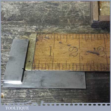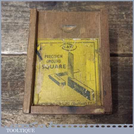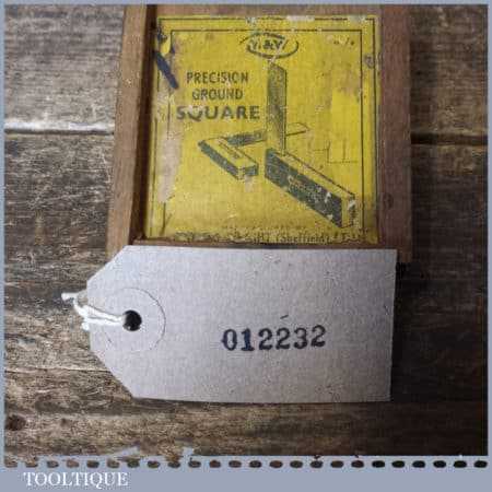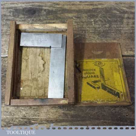 Vintage boxed Moore & Wright engineer’s precision set square with 3” blade, in good used condition.