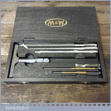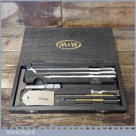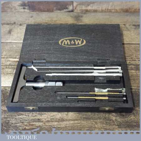 Vintage boxed Moore & Wright internal micrometer and in good used condition. This looks to have one part missing.