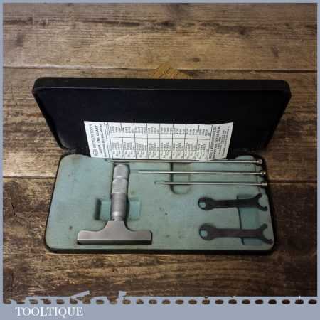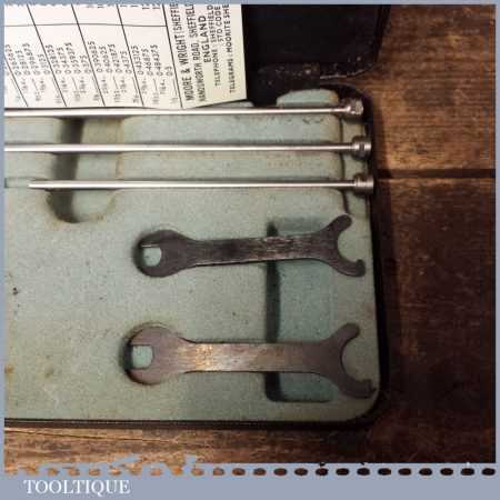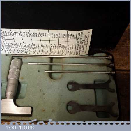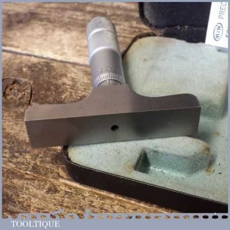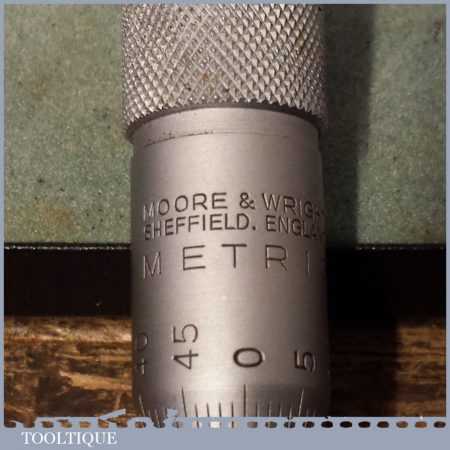 Vintage boxed Moore & Wright metric depth micrometer complete and in good used condition.