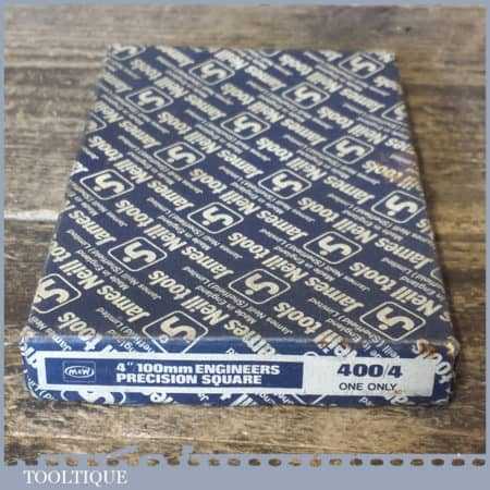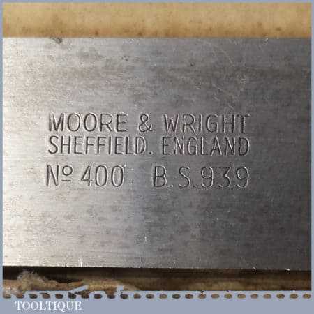 Vintage boxed Moore & Wright No: 400 engineer’s precision set square with 4” blade, in good used condition.
