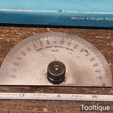 Vintage Boxed Moore & Wright No: 44 cast steel depth gauge, in good used condition.