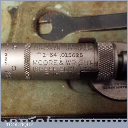 Vintage boxed Moore & Wright No: 966 1” – 2” imperial micrometer in good used condition.