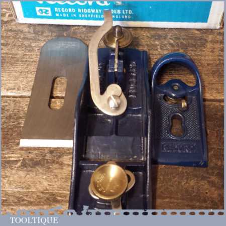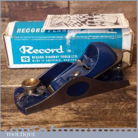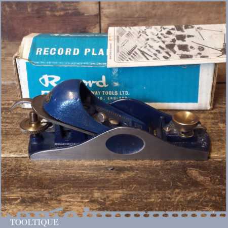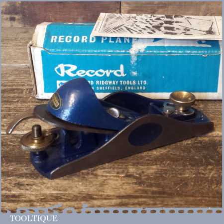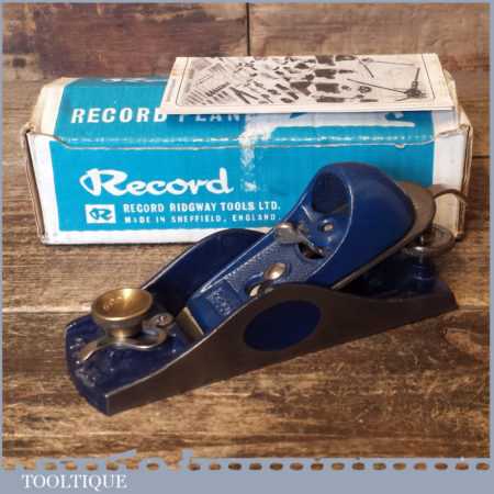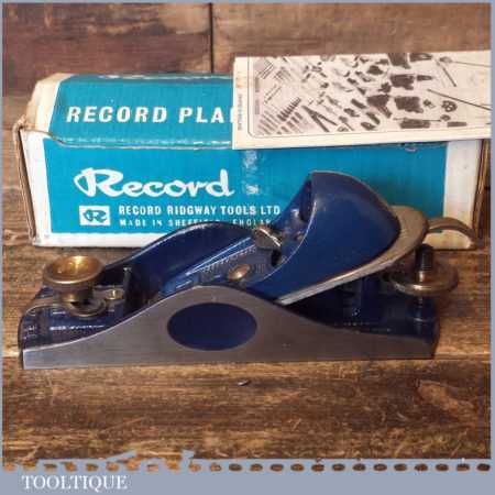 Vintage boxed near mint Record No: 09 ½ adjustable throat block plane, fully refurbished ready to use and in good used condition.