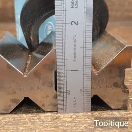 Vintage boxed Moore & Wright No: 502 V block clamps in good original condition.
