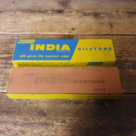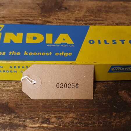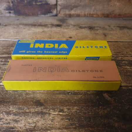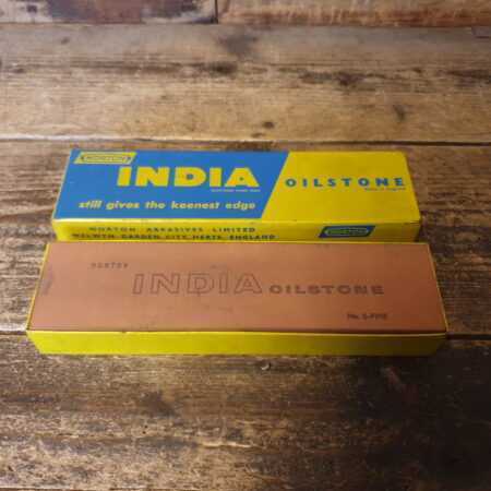 Vintage boxed Norton 8”x 2”x 1” India fine grit oil stone in little used condition.
