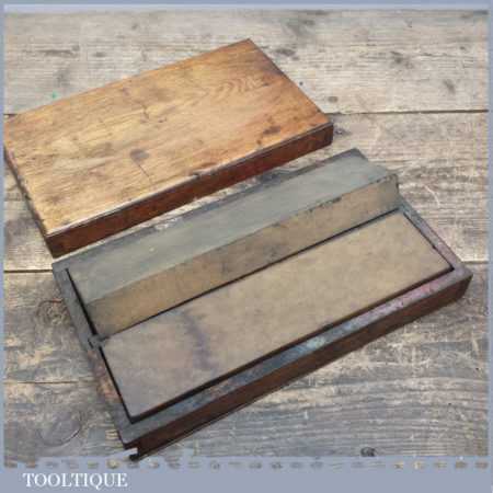 Vintage boxed pair of 8” oil stones, 1 medium grit India oilstone and a natural Washita stone in good used condition.