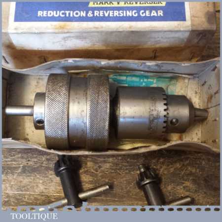 Vintage boxed Perkins Smith Ltd reduction and reversing gear for electric drill in good used condition.