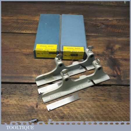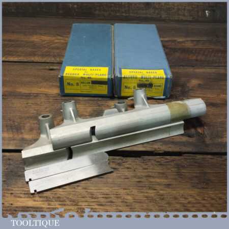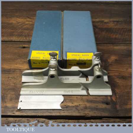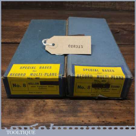 Scarce vintage boxed Record No: 8 hollow and round special bases with cutters for Record No: 405 combination plough plane, in little used condition.